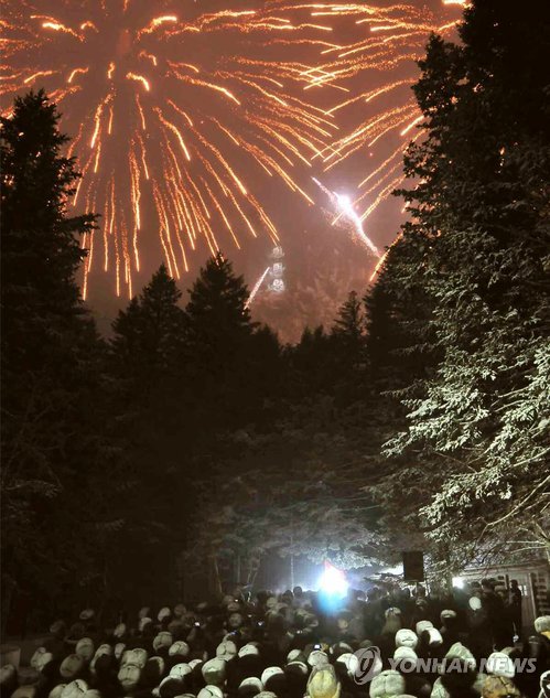 | △ 북한, 백두산 밀영서 '김정일 생일' 기념 축포 (서울=연합뉴스) 북한 노동당 기관지 노동신문은 12일 백두산 밀영에서 김정일의 생일을 기념하는 결의대회가 열렸다고 13일 밝혔다. 이날 결의대회에서는 김기남 당비서, 현영철 인민무력부장 등이 연설자로 나서 김정일 국방위원장의 '업적'을 치켜세웠으며 축포 행사 등도 열려 분위기를 고조시켰다. 2015. 2. 13 nkphoto@yna.co.kr |