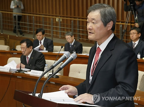 | △ 기관보고하는 고정식 한국광물자원공사 사장 (서울=연합뉴스) 이상학 기자 = 고정식 한국광물자원공사 사장이 13일 오전 국회에서 열린 정부 및 공공기관 등의 해외자원개발 진상규명을 위한 국정조사특별위원회 전체회의에서 기관보고를 하고 있다. |