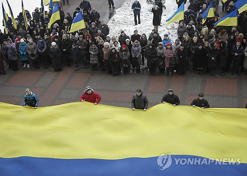 | △ 국기를 들고 있는 우크라이나 국민들 (AP=연합뉴스 자료사진) |