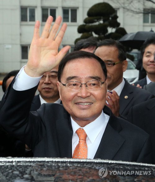 △ 손 흔들며 떠나는 정홍원 국무총리 (서울=연합뉴스) 최재구 기자 = 이임식을 마친 정홍원 국무총리가 16일 정부서울청사를 떠나며 손을 흔들고 있다.