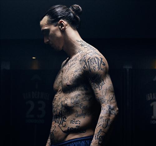 축구 팬들은 이브라히모비치가 여러 문화권의 이름이 새겨진 문신을 보여주는 까닭을 몰랐다.
