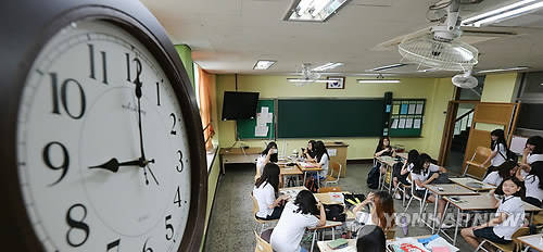 | △ 지난 해 의정부시의 한 여자중학교에서 학생들이 9시에 맞춰 등교해 수업을 준비하고 있다. (연합뉴스 자료사진) |