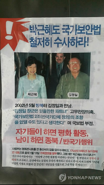 A4 용지 크기의 유인물 양면에는 '박근혜도 국가보안법 철저히 수사하라!', '자기들이 하면 평화활동, 남이하면 종북/반국가행위' 등의 문구가 적혔다.
