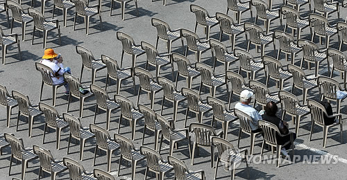 △ 지난해 경기도 파주시 임진각에서 열린 합동망향제에서 실향민들의 자리가 비어 있는 모습. (연합뉴스 자료사진)