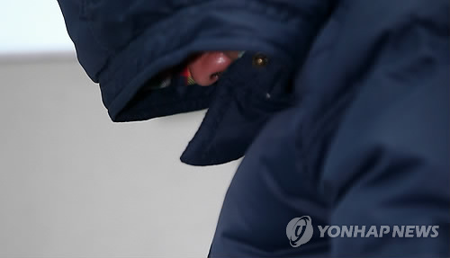 △ 광화문광장에 있는 세종대왕상을 폭파하겠다고 협박했던 남모씨. 사진은 지난해 12월28일 긴급체포돼 경기 화성동부경찰서에서 조사받을 당시 모습이다.