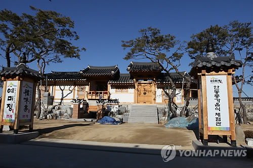| △ '안동 종가음식 체험관' 준공 (안동=연합뉴스) 이덕기 기자 = 경북 안동지역 전통음식을 널리 알리고 전통식품을 소재로 한 창업보육 업무를 담당할 안동 종가음식 체험관이 안동시 정상동에 준공됐다. 2015.1.7. <<안동 종가음식 산업화사업단>> duck@yna.co.kr |