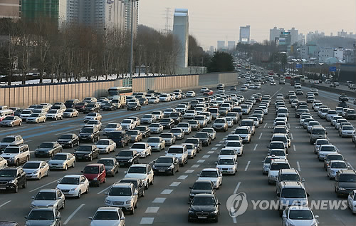 한국도로공사에 따르면 이날 오전 9시 현재 서울로 향하는 차량의 출발지별 예상 소요시간(승용차·요금소 기준)은 부산 5시간 30분, 목포 5시간 20분, 울산 4시간 30분, 광주 4시간 20분, 대구 3시간 30분, 강릉 2시간 50분, 대전 1시간 50분 등이다.