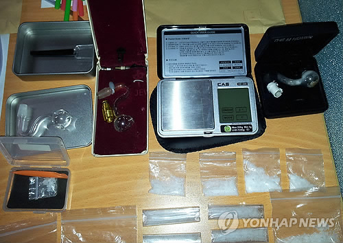 | △ 중국산 필로폰 4천명분 밀반입·유통한 일당 덜미 (서울=연합뉴스) 시가 4억원 상당의 중국산 필로폰을 몰래 들여와 이 중 일부를 국내 중국인들에게 유통한 일당이 경찰에 붙잡혔다. 서울지방경찰청 국제범죄수사대는 필로폰을 밀반입해 판매하거나 투약한 혐의(마약류 관리에 관한 법률 위반)로 권모(35)씨 등 8명을 구속하고 강모(36)씨 등 3명을 불구속 입건했다고 13일 밝혔다. 사진은 경찰이 공개한 필로폰과 피의자들의 소지품. 2015.1.13 << 서울청 국제범죄수사대 제공 >> photo@yna.co.kr |