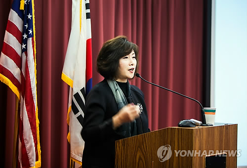 | △ "아베, 진정한 사죄·반성 끌어내는게 목표" (워싱턴=연합뉴스) 노효동 특파원 = 아베 신조(安倍晋三) 일본 총리의 미국 의회 연설계획에 반대하는 청원운동을 전개 중인 이정실 워싱턴 정신대대책위원회 회장은 22일(현지시간) 연합뉴스와의 인터뷰에서 "우리는 아베 총리의 의회 연설 자체를 반대하는게 아니라 아베 총리로부터 진정한 사죄와 반성을 이끌어내려는 것"이라고 밝혔다. 사진은 이 회장이 작년 11월 워싱턴DC 가톨릭대학에서 개최한 '위안부의 슬픔과 희망'을 주제로 한 세미나에서 발언하는 모습. 2015.2.23 << 워싱턴 정신대대책위원회 >> rhd@yna.co.kr |