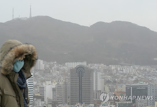 | △ 미세먼지 주의보 내린 부산 (부산=연합뉴스) 차근호 기자 = 중국에서 밀려온 황사로 23일 오전 부산 도심이 뿌연 미세먼지로 뒤덮여 있다. 부산시보건환경연구원은 이날 오전 9시를 기해 강서구와 북구, 사상구 사하구 일대에 미세먼지 주의보를 발령했다. |