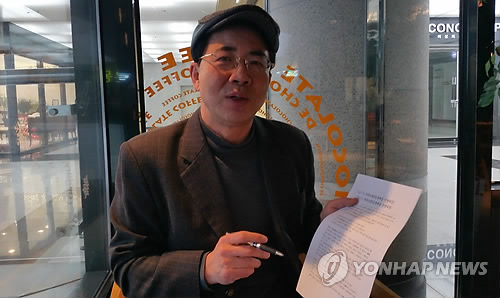 △ 입춘첩 한자표기를 바꿔야 한다는 이해수씨 (부산=연합뉴스) 심수화 기획위원 = 입춘첩의 '건양다경'(建陽多慶)의 한자를 '健陽多慶'으로 바로 잡아야 한다고 주장하는 주역 전문가인 이해수(60)씨가 연합뉴스와 인터뷰를 하고있다. 2015.2.24 sshwa@yna.co.kr