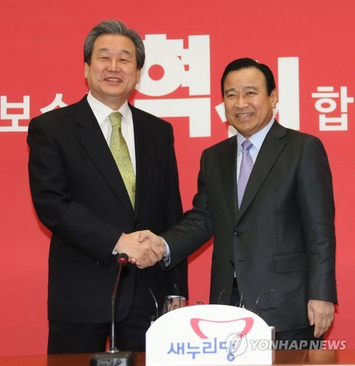 | △ 이완구 총리, 김무성 대표 예방 (서울=연합뉴스) 백승렬 기자 = 새누리당 김무성 대표가 24일 국회 대표실에서 이완구 총리와 인사하고 있다. |