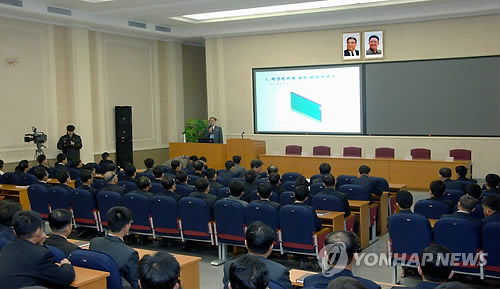 | △ 북 우주과학기술토론회 개최 (평양 조선중앙통신=연합뉴스) 우주과학기술토론회가 10일 김일성종합대학에서 열렸다고 조선중앙통신이 10일 촬영 보도했다. zjin@yna.co.kr |