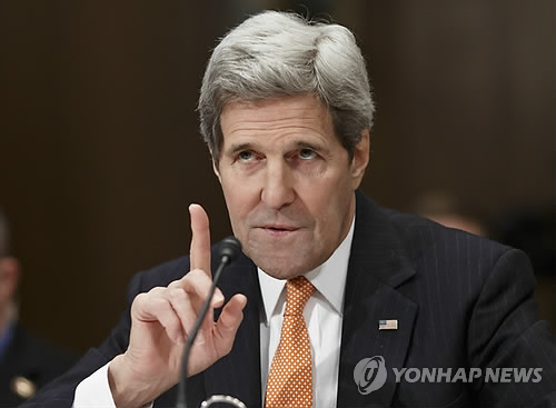 △ (AP=연합뉴스) 존 케리 미국 국무장관이 24일(현지시간) 워싱턴에서 상원 세출위원회에 출석해 이란 핵협상과 관련해 발언하고 있다. 케리 장관은 "이란이 용인할 수 있고 검증 가능한 안건을 제시할 의지가 있는지를 조만간 알 수 있을 것으로 본다"고 말했다.