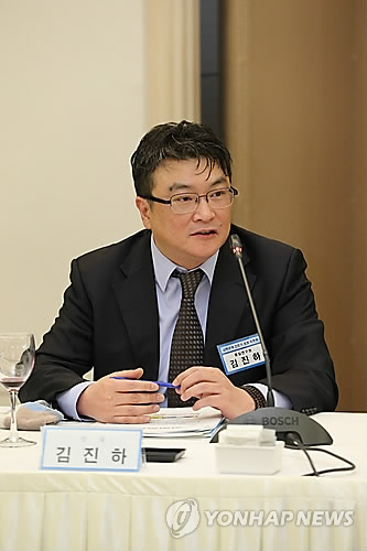 △ 김진하 통일연구원 국제전략연구센터 소장이 25일 민주평화통일자문회의와 통일연구원이 프레스센터에서 연 전문가 토론회에서 발제를 하고 있다.