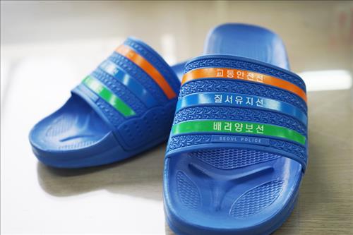 금천경찰서는 '선선선'을 홍보하는 차원에서 3개의 선에 각 문구를 적은 삼선 슬리퍼를 제작했다.