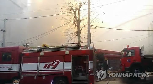 | △ 서울 시내 한 시장에서 불이나 긴급 출동한 소방차들이 진화작업을 벌이고 있다. (독자 제공) |