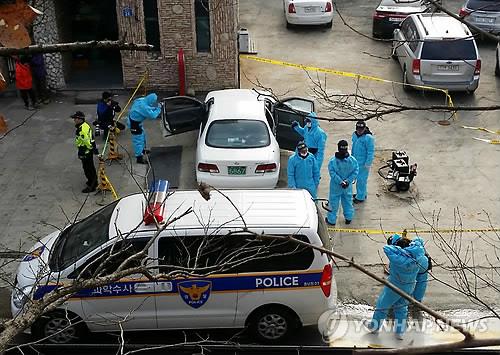 △ 세종 총기사건 현장 (세종=연합뉴스) 이재림 기자 = 25일 오전 8시께 세종특별자치시 장군면 금암리 한 편의점에서 한 괴한이 총기를 발사해 3명이 숨졌다. 경찰이 사건 현장에서 감식을 벌이고 있다.
