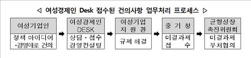 (서울=연합뉴스) 임은진 기자 = 중소기업청과 여성기업종합지원센터는 여성기업인의 경영애로와 정책 아이디어 발굴을 위한 소통창구인 '여성경제인 DESK'를 전국 16개 여성기업종합지원센터에 설치한다고 25일 밝혔다.
