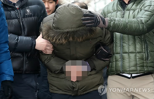 | △ 현장검증 위해 아파트 들어가는 '서초 세모녀 살해 가장' (연합뉴스 자료사진) |