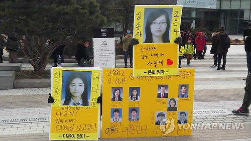 세월호 참사 실종자인 단원고 허다윤양과 조은화양의 부모들은 26일 오후 1시께 청와대 앞 분수대 인근에서 피켓 시위를 통해 세월호의 온전하고 조속한 인양을 정부에 촉구했다.