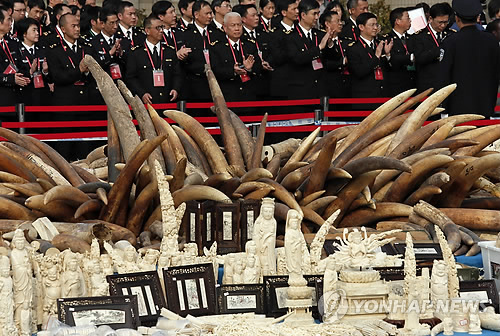 중국은 세계에서 가장 많이 밀수상아를 들여오고 있으며, 남부 광둥성 둥관(東莞)에서만 작년에 몰수해 폐기한 상아가 6t에 달했다.
