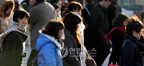 아침에 영하 5.6도로 출발했던 서울의 기온은 한낮에 4.8도까지 올랐지만 평년보다 2도가량 낮았다. 낮 최고기온은 전국적으로 평년보다 3∼6도 낮은 수준을 기록했다.