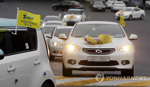 국제전기자동차엑스포 조직위원회의 주관으로 열린 이날 전기차 퍼레이드에는 민간·기업 보유의 전기차 100대가 참여했다.