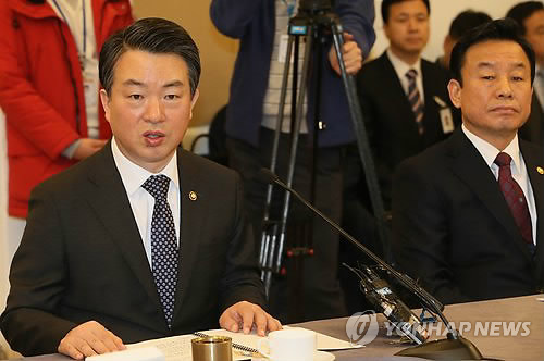 | △ 총기사고 재발방지 대책보고하는 경찰청 (서울=연합뉴스) 진성철 기자 = 강신명 경찰청장이 2일 국회 귀빈식당에서 열린 총기사고 재발방지 및 안전대책 당정협의에서 보고하고 있다. 오른쪽은 박인용 국민안전처 장관. |