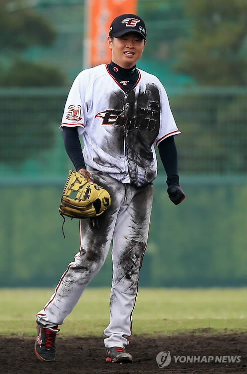 | △ 한화 이창열 흙투성이 유니폼 (야에세<일본 오키나와현>=연합뉴스) 홍해인 기자 = 한화 이글스의 강훈련은 스프링캠프 내내 화제였다. 한화 내야수 이창열이 2월 28일 오후 스프링캠프가 차려진 일본 오키나와현 야에세의 고친다구장에서 가진 팀 플레이 훈련에서 슬라이딩 수비 후 홈을 바라보고 있다. hihong@yna.co.kr |