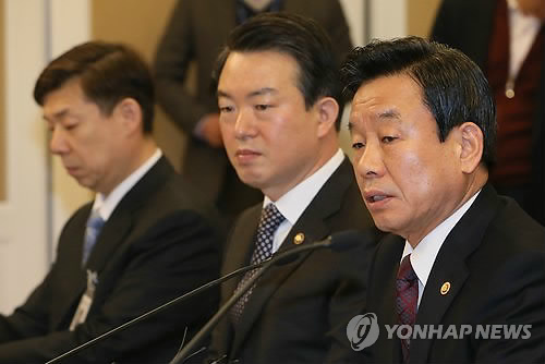 △ 총기사고 재발방지 대책보고하는 국민안전처 (서울=연합뉴스) 진성철 기자 = 박인용 국민안전처 장관(오른쪽)이 2일 국회 귀빈식당에서 열린 총기사고 재발방지 및 안전대책 당정협의에서 보고하고 있다. 왼쪽은 강신명 경찰청장.