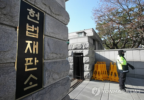 △ 헌법재판소 입구의 현판. <<연합뉴스DB>>