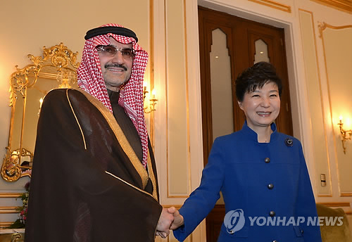 (리야드·아부다비=연합뉴스) 정윤섭 박성민 기자 = 중동 4개국을 순방 중인 박근혜 대통령은 4일 오후(현지시간) 두 번째 방문국인 사우디아라비아에서 '중동의 워렌버핏'으로 불리는 킹덤홀딩사(KHC) 알 왈리드 회장을 만나 한국 문화사업에 대한 투자를 당부했다.