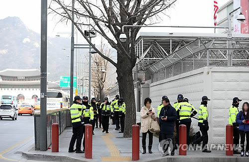 | △ 미국대사관에 경찰 추가투입 (서울=연합뉴스) 신준희 기자 = 마크 리퍼트 주한 미대사에 대한 테러 사건이 발생한 5일 오전 서울 종로구 주한미국대사관 앞에 경찰 병력이 추가 투입되고 있다. 2015.3.5 hama@yna.co.kr |