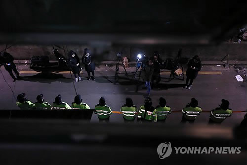 | △ 김기종씨 사무실 앞 출입 통제 (서울=연합뉴스) 박동주 기자 = 경찰관계자들이 마크 리퍼트 미국 대사를 흉기로 공격한 혐의로 검거된 우리마당독도지킴이 대표 김기종씨의 서울 서대문구 창천동 사무실 겸 자택을 6일 오전 압수수색 하기 위해 출입을 통제하고 있다. |