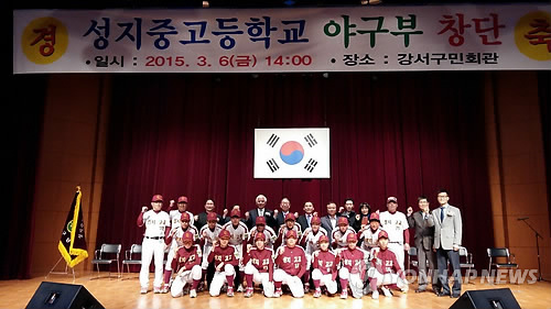 △ 대안학교 성지고 야구단 창단 (서울=연합뉴스) 이대희 기자 = 대안학교 성지고는 6일 오후 서울 강서구 강서구민회관에서 야구단 창단식을 열고 첫 걸음을 내디뎠다.