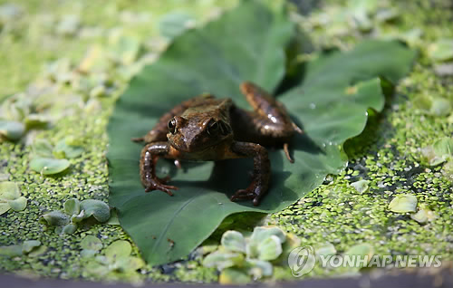 | △ 경칩 개구리 (과천=연합뉴스) 김도훈 기자 = 절기상 경칩인 6일 오후 경기도 과천 서울대공원 곤충관에서 개구리가 연잎 위에서 잠시 쉬고 있다. 서울대공원은 5월 31일까지 토종개구리와 외국산 개구리 총 19종 100여 마리를 전시하는 개구리 특별전시를 진행한다. |