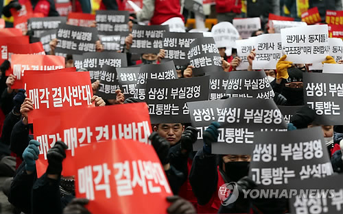 이들은 공동 성명을 통해 "삼성그룹 미래전략실은 매각 4사의 경영진·인사팀을 조종해 노동자들이 지치기만 기다리고 있다"며 "매각 작업을 즉각 중지하고, 삼성의 노동자 대표인 공동 교섭단과 협상에 성실히 임하라"고 촉구했다.