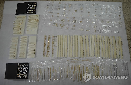 △ 물품보관함에서 발견된 억대의 귀금속 (군포=연합뉴스) 서울 동대문의 한 의류 쇼핑몰 지하 물품보관함에서 3개월 넘게 주인이 찾아가지 않은 2억원 상당의 귀금속 767점. 경찰은 귀금속 여주인의 신원을 파악했지만, 행방불명 상태인 것이 확인되자 강력사건으로 보고 대대적인 수사에 착수했다. 그러나 해당 여성은 이혼 후 대인기피증 때문에 가족들과 연락을 끊고 지내온 것으로 드러났다.2015.3.8<<군포서 제공>> goals@yna.co.kr