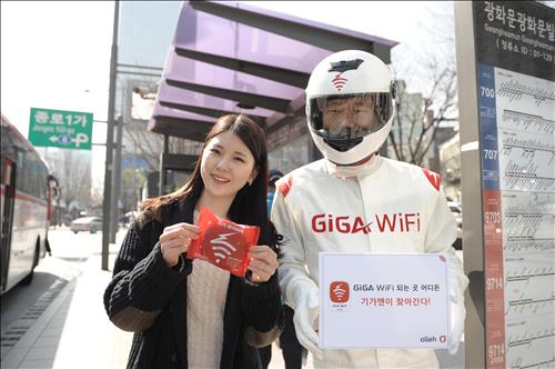 캠페인 장소에는 기가 와이파이라고 적힌 옷과 헬멧을 착용한 '기가맨'이 등장해 고객의 서비스 체험을 돕는다.