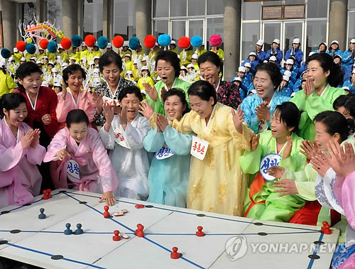 | △ 북한 여성들이 지난달 설을 맞아 윷놀이를 즐기는 모습을 조선중앙통신이 2월 19일 소개했다. <<연합뉴스DB>> |