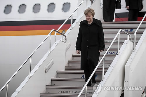 메르켈 총리는 오전 도쿄 하네다 공항에 도착, 이틀간의 공식 방문 일정을 시작했다.