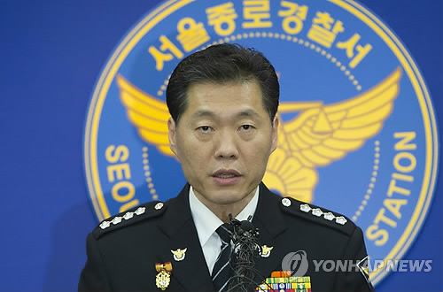 | △ 종로 경찰서, 김기종씨 관련 브리핑 (서울=연합뉴스) 윤동진 기자 = 윤명성 종로경찰서장이 9일 오전 서울 종로서 브리핑실에서 마크 리퍼트 주한 미대사의 피습사건 관련 수사 브리핑을 하고 있다. 2015.3.9 mon@yna.co.kr |