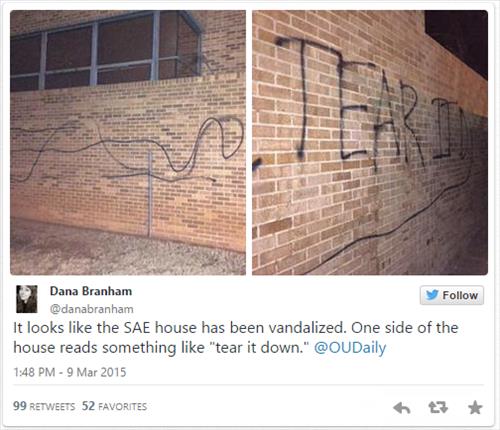 이 학교 흑인 학생들이 문제의 동영상을 입수해 온라인에 올렸고, 이날 오후 늦게 오클라호마 대학 SAE 동아리 사무실은 정체 모를 공격을 받아 파손됐다.