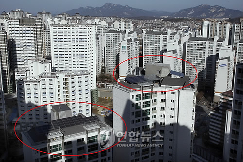 | △ 아파트 옥상에 설치된 태양전지판넬. (연합뉴스 자료사진) |