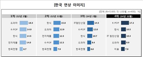 (서울=연합뉴스) 권혜진 기자 = '한국' 하면 가장 많이 떠오르는 이미지가 'IT첨단'에서 'K팝'으로 바뀐 것으로 나타났다.