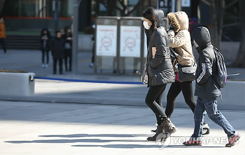 (서울=연합뉴스) 김연숙 기자 = 수요일인 11일 오후 전국에 찬바람이 강하게 불면서 꽃샘추위가 사흘째 이어지고 있다.