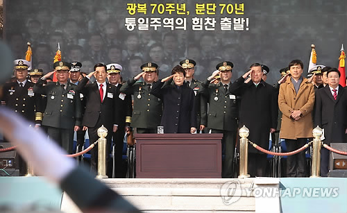 박 대통령은 "우리에게는 지난 70년 분단의 역사를 마감하고 후손들에게 진정한 광복인 '한반도 통일시대'를 물려줘야 할 역사적 책임과 사명이 주어져 있다"며 "이를 위해 가장 기본이 되는 토대가 바로 튼튼한 안보"라고 말했다.