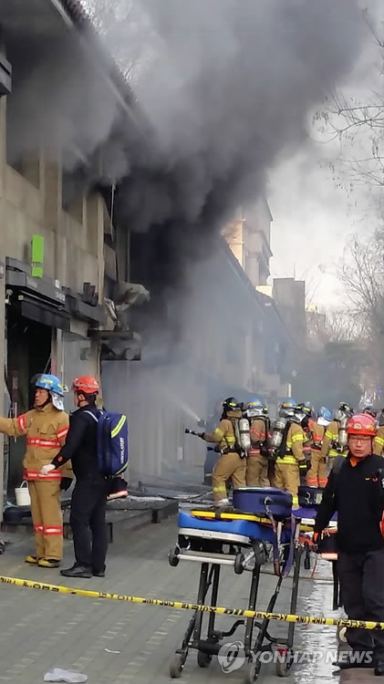 (서울=연합뉴스) 이대희 기자 = 서울 압구정동의 한 카페에서 가스 폭발로 추정되는 화재가 발생해 외국인 여성 1명이 다쳤다.