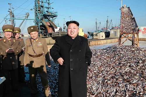 | △ 북한 김정은 국방위원회 제1위원장이 인민군 제567군부대가 운영하는 수산물 공장인 18호수산사업소를 현지지도했다고 조선중앙통신이 지난해 11월 19일 보도한 사진. 이 곳은 하선한 물고기 등을 냉동하거나 소금에 절여 보관·저장하는 수산물 공장이다. 통신은 이 사진을 보도하며 정확한 촬영 날짜는 밝히지 않았다.<<연합뉴스DB>> |